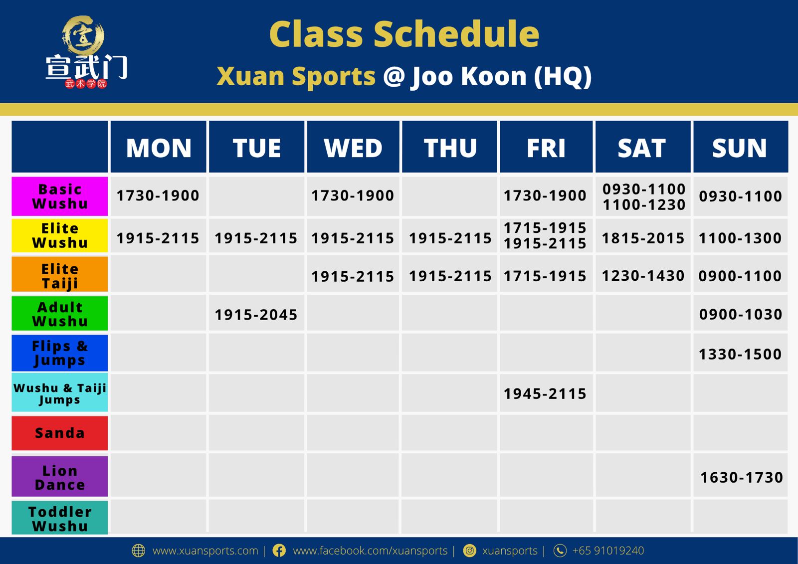 As we are sharing the unit with a dance school, space is limited. As such, this outlet will not be offering Elite Wushu, Elite Taiji, Adult Wushu, Advanced Flips & Jumps, Sanda, Lion Dance, or Toddler Wushu. We appreciate your understanding and look forward to welcoming you to our new location!"
